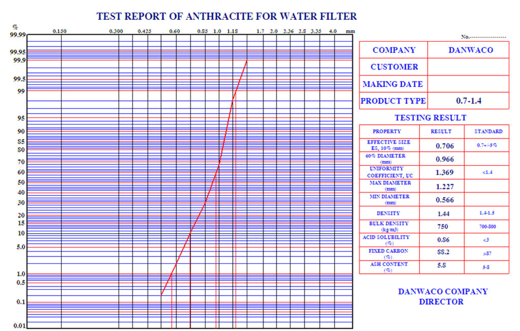 • Xuất xứ: Sản xuất tại nhà máy Vật liệu lọc của Công ty DANWACO. Nguyên liệu là than Anthracite.