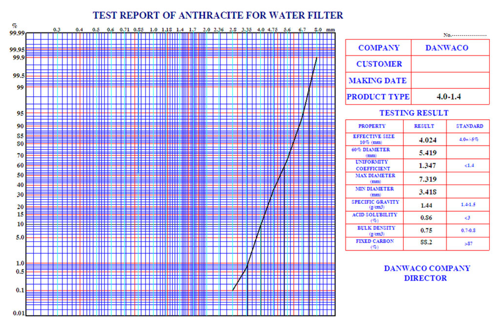 Xuất xứ: Sản xuất tại nhà máy Vật liệu lọc của Công ty DANWACO. Nguyên liệu là than Anthracite